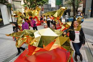 香港街頭“金牛呈祥”送祝福