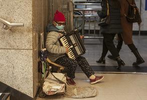 七旬奶奶地鐵拉手風琴