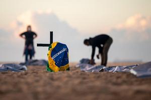 海灘上悼念新冠逝者