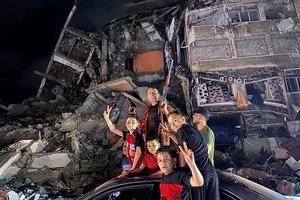 加沙民眾廢墟上慶祝