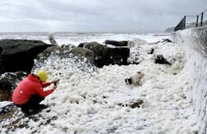 英國海岸漲潮產(chǎn)生泡沫奇觀