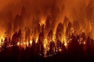 美國(guó)加州野火肆虐 火光映紅山林