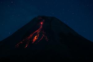印尼默拉皮火山滾滾巖漿涌出