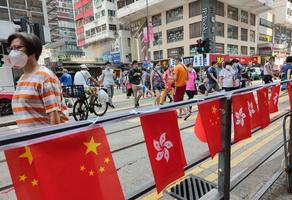 香港街頭國慶氣氛濃