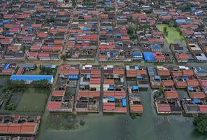 10月11日,山西省介休市,洪水倒灌南橋頭村,致使村莊積水嚴重,救援人員在村外河堤旁使用大型設備掘開一個泄洪口,加速排洪。日前,受連續(xù)降雨影響,汾河介休段洪峰過境后水位上漲,堤岸及沿河部分民房、糧田被淹,當?shù)卣M織相關部門在現(xiàn)場抗洪搶險。中新社記者 韋亮 攝