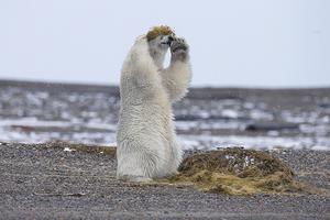 北極熊頭戴海藻當(dāng)假發(fā)