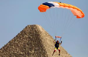 跳傘運(yùn)動(dòng)員飛躍金字塔