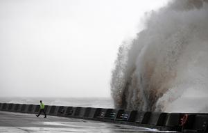 英國(guó)海岸掀起狂風(fēng)巨浪