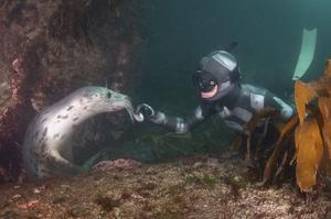 潛水者與海豹嬉戲