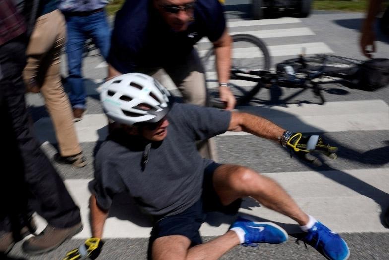 美國(guó)總統(tǒng)騎車摔倒