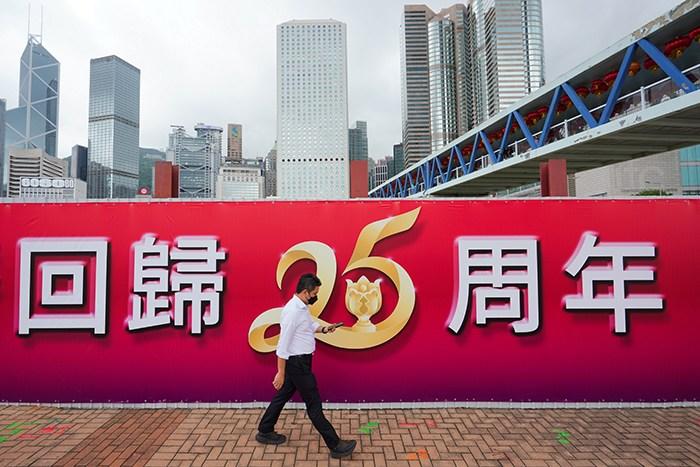 香港街頭慶回歸氣氛濃