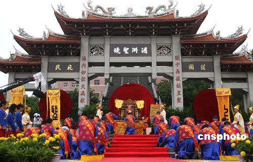 11月1日,第九屆中國·湄州媽祖文化旅游節(jié)在媽祖故鄉(xiāng)福建省莆田市湄州島開幕,媽祖文化旅游節(jié)上舉行了隆重的媽祖祭典儀式。中新社發(fā) 張勤 攝