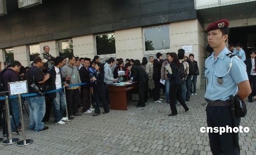 十一月五日,澳門前運(yùn)輸工務(wù)司司長歐文龍涉嫌嚴(yán)重受賄案在終審法院開審,法院外三步一崗,五步一哨,戒備森嚴(yán)。被控七十六項罪名的歐文龍首度出庭應(yīng)訊,預(yù)計聆訊超過一個月。這是澳門回歸八年來首宗直接由終審法院主理的刑事案,被喻為“世紀(jì)巨貪案”。中新社發(fā) 史利 攝