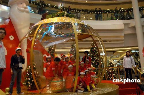 11月27日,香港一商場(chǎng)以“圣誕球的主角”為主題,舉行圣誕裝飾亮燈儀式,小朋友置身“圣誕球”感受另一番的歡和樂(lè)。中新社發(fā) 譚達(dá)明 攝