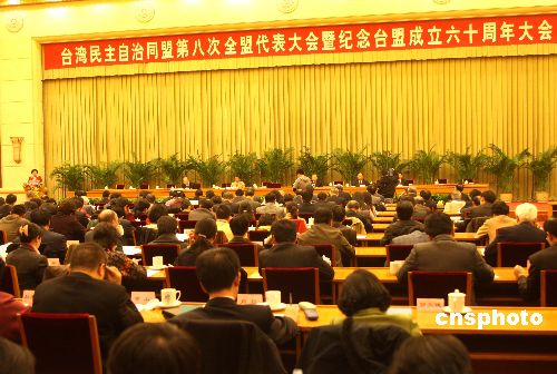 11月28日,臺灣民主自治同盟第八次全盟代表大會暨紀念臺盟成立六十周年大會在北京召開。中新社發(fā) 趙振清 攝
