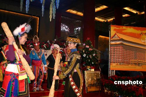 十二月五日下午,古色古香的臺北圓山飯店舉行圣誕點燈儀式,并請來原住民作為大地的代言人,從大地采光,點燃圣誕之燈。據(jù)了解,今年圓山飯店的圣誕樹造型的燈使用環(huán)保材料,圣誕之后,仍可用作日常的照明。中新社發(fā) 陳國華 攝