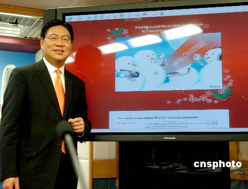 12月21日,香港商務(wù)及經(jīng)濟(jì)發(fā)展局局長(zhǎng)馬時(shí)亨主持2008年“數(shù)碼21”資訊科技策略新聞簡(jiǎn)報(bào)會(huì)。馬時(shí)亨即場(chǎng)發(fā)送電子賀咭予各個(gè)傳媒機(jī)構(gòu),祝愿圣誕節(jié)快樂。中新社發(fā) 鄧慶樂 攝