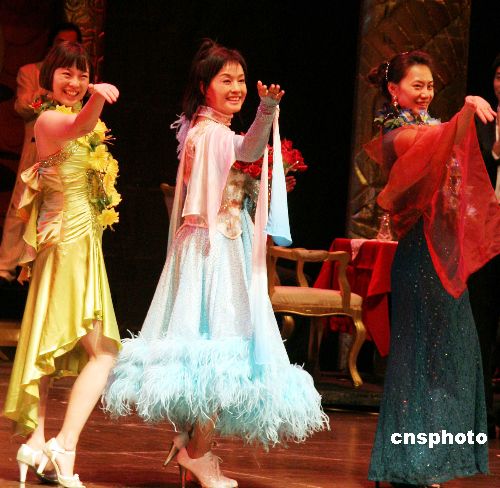 一月三日晚,大陸知名影視演員劉曉慶(中)在臺北國父紀(jì)念館彩排舞臺劇《金大班的最后一夜》,由她領(lǐng)銜主演的《金大班的最后一夜》四日起將在臺北公演六場。這是該劇在上海、北京、南京及新加坡等地巡演數(shù)十場并廣受好評后,首次來臺灣演出。中新社發(fā) 孫自法 攝