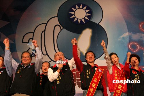 1月11日晚,中國國民黨在臺北縣三重市綜合運(yùn)動場舉辦“2008臺灣轉(zhuǎn)運(yùn)之夜”活動,為國民黨參加本屆“立委”選舉作最后沖刺。中新社發(fā) 孫自法 攝