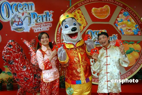 一月十七日,香港海洋公園吉祥物威威獅令以新春唐衫裝扮大派新年利是,宣傳賀歲活動。當日,該公園宣布由二月二日至十七日農(nóng)歷期間舉辦“大團拜”,上演“冰上百老匯”、“舞龍大匯演”等迎鼠接;顒印V行律绨l(fā) 蔡蔓莉 攝