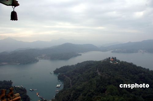 一月二十二日,從日月潭周邊制高點(diǎn)——慈恩塔頂層拍攝到的日月潭綺麗風(fēng)光。站在蔣介石當(dāng)年因思念母親而專門修建的慈恩塔頂層上觀賞,日月潭全貌盡收眼底。中新社發(fā) 孫自法 攝