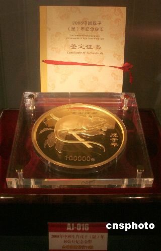一月二十七日,由中國臺北奧委會、臺灣大洋金銀幣有限公司主辦的“第二十九屆北京奧運會金銀紀念幣慈善拍賣會在臺北誠品信義店舉行。圖為在拍賣會上拍賣,由中國人民銀行發(fā)行,全球發(fā)行總量只有十八枚的十公斤重鼠年紀念金幣,拍賣底價新臺幣一千二百二十萬元。中新社發(fā) 陳立宇 攝