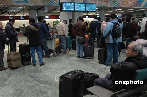 二月三日,澳門國(guó)際機(jī)場(chǎng)辦理登機(jī)手續(xù)處排起了長(zhǎng)隊(duì)。春節(jié)期間,澳門航空公司加開三十四個(gè)航班,分別為杭州兩班,上海十二班,臺(tái)北八班和東京包機(jī)十二班,以滿足市場(chǎng)需求。中新社發(fā) 史利 攝