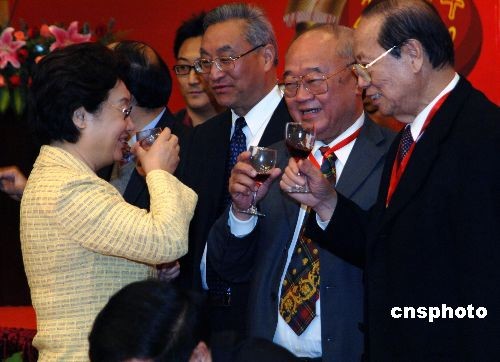 二月二十日晚,中國國僑辦主任李海峰(左一)在廈門與前來參加“海峽西岸鬧元宵,全球華人盼團(tuán)圓”活動(dòng)的海外華人華僑及港澳臺(tái)同胞共話鄉(xiāng)誼。中新社發(fā) 王東明 攝