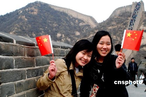 3月8日,北京華文學院組織百名華裔女生登上長城同慶“三八”節(jié),使他們真正感受到了學院對海外華人的關心和厚愛。北京華文學院是中國國務院僑務辦公室的直屬院校。始建于1950年,辦學宗旨是為海外華僑、華人和外籍學生學習中國語言和文化提供條件,為促進中外文化交流和友好往來服務。至今,共有54個國家和地區(qū)的近5萬余名海外學生來院學習。中新社發(fā) 楊慧峰 攝