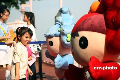 圖:香港小朋友嘉年華上與福娃親密接觸