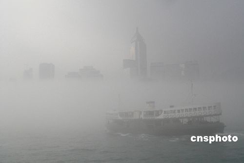 四月六日,香港清晨部分海域能見度低于兩海里,蒲臺島海域今早約六時發(fā)生兩艘貨船相撞意外,其中一艘貨船船尾被撞穿入水,事件中無人受傷。國泰航空早上一班由臺北來港的航機轉(zhuǎn)飛廣州,傍晚才起飛來港。另有一些離島至港島的渡船停開。圖為上午維港掩映在飄渺的白霧中。 中新社發(fā) 陳京松 攝