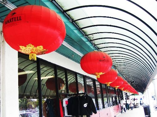 當(dāng)?shù)貢r(shí)間4月6日,洛杉磯華人區(qū)的各家商店掛起了大紅燈籠,迎接4月9日北京奧運(yùn)圣火傳遞到舊金山。金立冬 攝