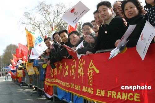 華僑華人在巴黎埃菲爾鐵塔下迎北京奧運(yùn)圣火