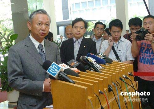 五月十三日,香港保安局局長李少光就四川發(fā)生大地震,特別在政府合署西座大堂會(huì)見傳媒。他表示,一隊(duì)主要由消防員組成的二十人支援隊(duì)伍,會(huì)盡快趕赴災(zāi)區(qū)協(xié)助救援,隊(duì)伍包括十五名消防員,三名救護(hù)員,還有其他醫(yī)護(hù)人員等,他們會(huì)帶備生命探測器及自備帳篷,需要時(shí)會(huì)動(dòng)員更多人到當(dāng)?shù)鼐葹?zāi)。中新社發(fā) 鄧慶樂 攝
