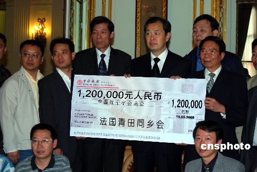 法國青田同鄉(xiāng)會十九日通過中國駐法大使館,向四川地震災(zāi)區(qū)捐款,支持抗震救災(zāi)。至今,旅法僑胞向四川地震災(zāi)區(qū)捐款已超過一千萬元人民幣。