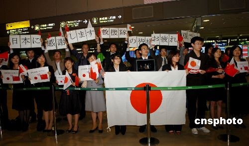 5月21日上午,數(shù)十位在日華人華僑自發(fā)來到成田機場,歡迎從四川地震災(zāi)區(qū)歸來的日本國際緊急救援隊。他們手持中日兩國國旗和書有“中國人感謝日本”、“救援隊的諸位辛苦了”的橫幅,向支援中國抗震救災(zāi)的救援隊隊員表示感謝。