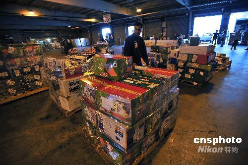 當(dāng)?shù)貢r間5月28日,美國硅谷華人工程師將向四川地震災(zāi)區(qū)捐贈的2000多頂帳篷、1000多個睡袋等賑災(zāi)物資交付美國聯(lián)合航空公司,這批賑災(zāi)物資將先運(yùn)往北京首都國際機(jī)場,然后再轉(zhuǎn)運(yùn)四川災(zāi)區(qū)。中新社發(fā) 陳剛 攝