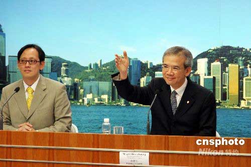 香港奧運馬術(shù)公司行政總裁林煥光(右)和香港中旅社發(fā)言人吳熹安六月十日舉行新聞簡報會,宣布香港再獲北京奧組委分配六萬張奧運馬術(shù)門票,將于六月十二日開售。香港中旅社將受委托作為門票銷售的票務代理。中新社發(fā) 黎金良 攝