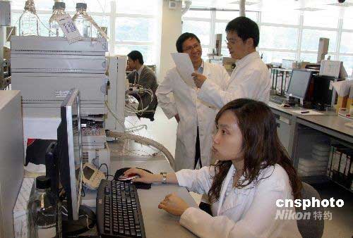 圖為香港賽馬會賽事化驗所工作人員在進(jìn)行樣本檢驗分析。北京奧運會馬術(shù)比賽將于八月九日至二十一日在香港舉行,該項賽事的馬匹藥檢化驗工作由實力雄厚、經(jīng)驗豐富的香港賽馬會承擔(dān)。香港賽馬會賽事化驗所每年檢驗超過一萬八千個正式樣本,是國際馬術(shù)運動聯(lián)合會授予的四個“確證化驗所”之一。中新社發(fā) 孫自法 攝