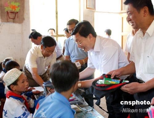 6月11日至12日,國務院僑辦副主任馬儒沛一行赴國僑辦定點幫扶點積石山縣,視察了定點幫扶項目的進展情況,并看望了積石山縣的部分貧困農戶和小學生。13日,馬儒沛向甘肅省政府轉交海外僑胞的捐款1000萬元人民幣。中新社發(fā) 牛建業(yè) 攝