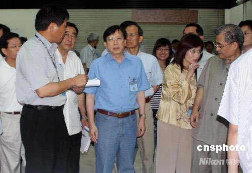 大陸觀光客七月四號即將來臺,六月二十一日,臺灣“行政院長”劉兆玄到臺北松山機場及日月潭視察接待準備工作。他強調,除了硬件要做到最好之外,更要注意人員的素質,希望大陸觀光客一踏進機場,立刻感受到最好的氣氛。圖為劉兆玄在松山機場聽取稽查人員有關工作匯報。 中新社發(fā) 耿軍 攝