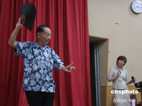 京劇大師梅蘭芳之子梅葆玖(左)第三次訪問臺灣,六月二十一日應邀在臺北科技大學演講時,應京劇戲迷要求表演《霸王別姬》片斷,其臺灣女弟子魏海敏(右)作陪并在一旁認真學習揣摩。中新社發(fā) 耿軍 攝