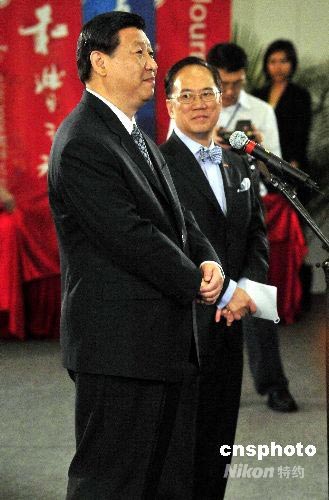七月六日下午,國家副主席習(xí)近平在香港奧運馬術(shù)場地,會見北京奧運香港運動員代表。中新社發(fā) 譚達明 攝