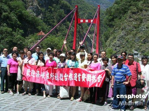 圖:大陸首發(fā)團(tuán)游客參訪花蓮太魯閣