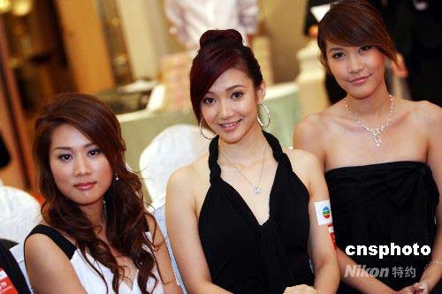 七月十五日,港姐張嘉兒(左)、王君馨(中)、周美欣盛裝出席在香格里拉酒店舉行的迪斯尼ABC與無線電視簽約啟動儀式。當日,迪斯尼ABC國際電視與香港無線明珠臺攜手合作推出“明珠節(jié)目網(wǎng)上追”英文頻道,向公眾免費提供追看電視服務。中新社發(fā) 洪少葵 攝