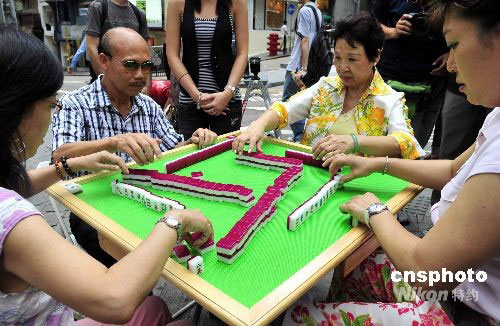 九月五日,首屆“世界麻將大賽”冠軍許宗澧在記者會(huì)上與其它選手比較高下。第二屆“世界麻將大賽”將于九月十九日至二十一日在澳門舉行,提供麻將競賽有史以來的最高額獎(jiǎng)金一百萬美元。中新社發(fā) 譚達(dá)明 攝