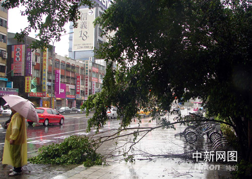 九月十四日,臺(tái)風(fēng)“森拉克”在臺(tái)島徘徊不去,此次臺(tái)風(fēng)風(fēng)大雨量更大,臺(tái)北街頭不時(shí)可見(jiàn)“森拉克”留下的“痕跡”。曾福志 攝