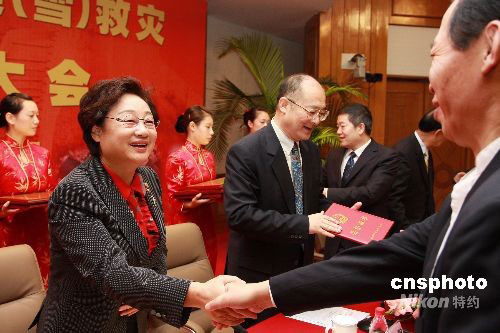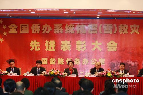 9月28日,國務院僑辦在北京召開僑辦系統(tǒng)抗震(雪)救災先進表彰電視電話會議,對全國僑辦系統(tǒng)在抗震(雪)救災斗爭中表現(xiàn)突出的50個先進集體和100名先進個人予以表彰。中新社發(fā) 鄭雄增 攝