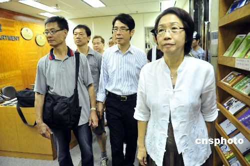 十月二十一日,香港二十多名泰林電器的外判技工,早上與特區(qū)政府勞工處長(zhǎng)謝凌潔貞會(huì)面,希望追討欠薪及工程費(fèi),估計(jì)涉款一百五十萬港元。中新社發(fā) 譚達(dá)明 攝