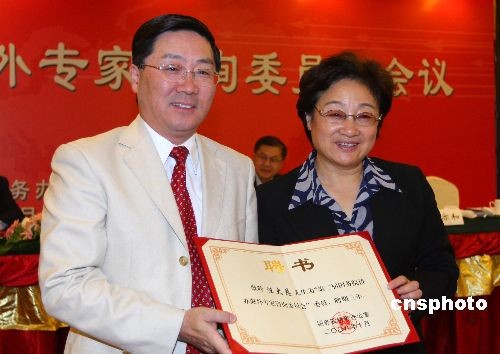 10月27日,第二屆國務(wù)院僑辦海外專家咨詢委員會會議在北京舉行。國務(wù)院僑務(wù)辦公室主任李海峰向新任的38名海外專家咨詢委員會委員頒發(fā)聘書。中新社發(fā) 廖文靜 攝